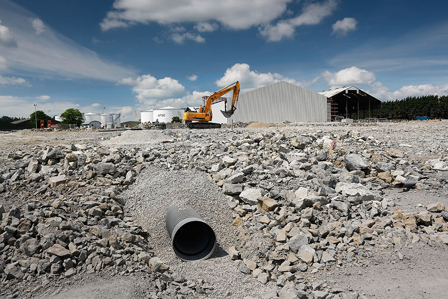 Extension to coal storage warehouse including relocation of 33,000m3 of hardcore fill material. Demolition and removal of existing lean too sheds. Complete storm and surface water drainage, hard and soft landscaping. Extension to reinforced concrete yard, power washing to roof cladding, waste water treatment plant.