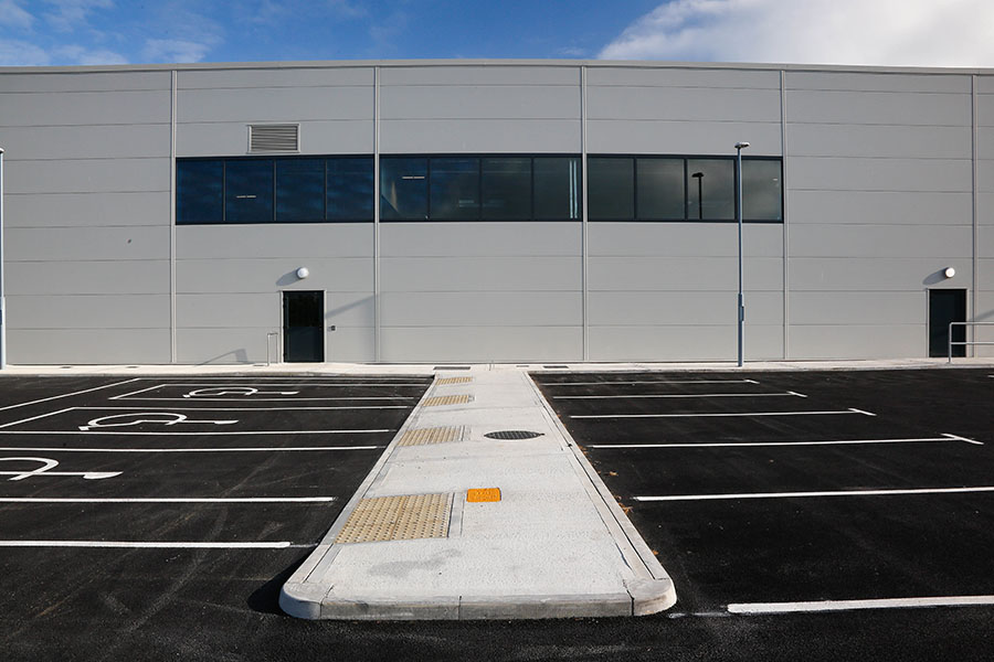 Extension to manufacturing facility including substantial rock breaking and disposal off site for culvert diversion. Completed groundworks, storm and surface water drainage, hard and soft landscaping.